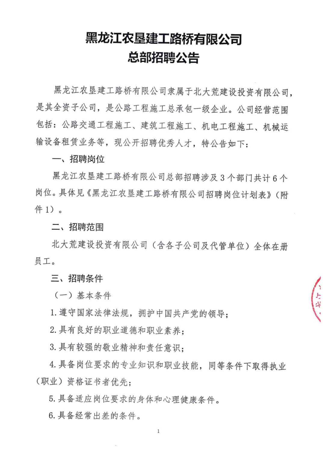 【公開招聘】黑龍江農墾建工路橋有限公司總部招聘公告